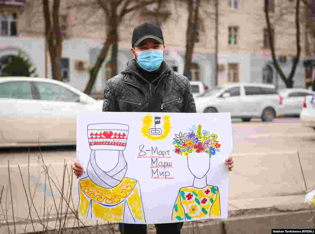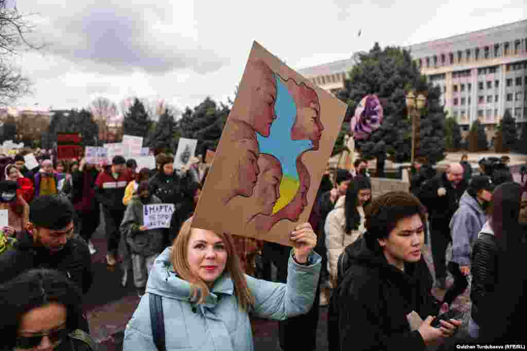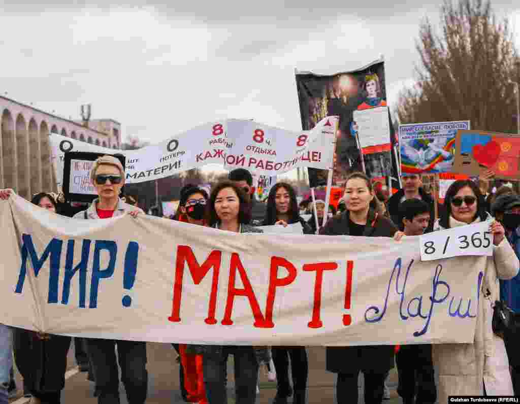 В Бишкеке 8 марта прошло мирное шествие «Мир! Март! Марш!». Основным его лозунгом стал призыв к солидарности женщин против войны в Украине и других странах мира.
